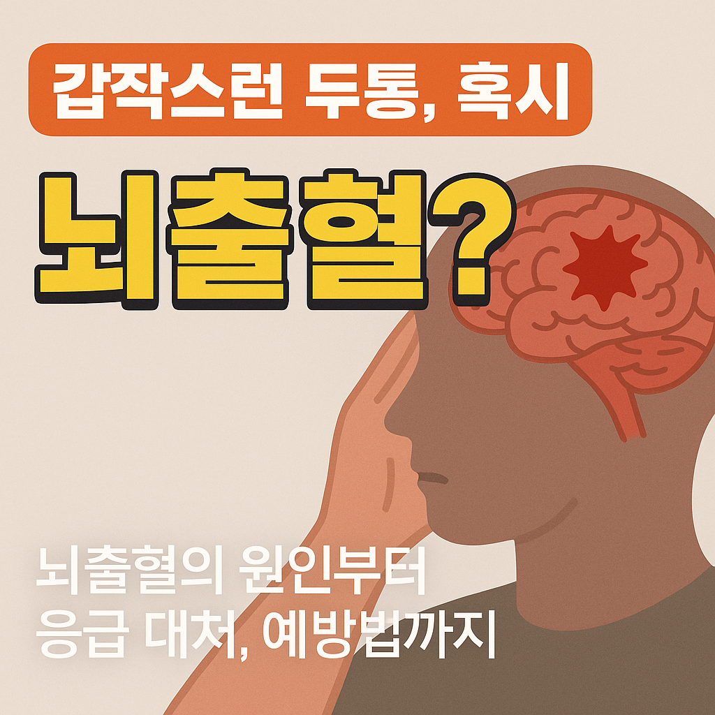 오늘은 갑작스럽게 생명을 위협할 수 있는 **뇌출혈(腦出血, cerebral hemorrhage)**에 대해 알아보겠습니다. 뇌출혈은 고령층뿐만 아니라 최근에는 젊은 층에서도 발생 빈도가 높아지고 있어 누구나 반드시 알아야 할 질환입니다.